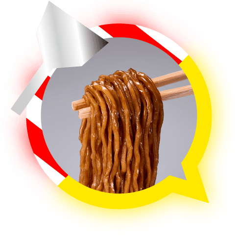 オニオンねり込み麺 - 明星食品の強みでもある「ねり込み麺」技術を使い、甘めのソースに合うオニオンを麺にねり込むことで麺とソースの一体感を出しています。