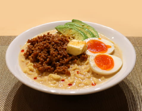 豚骨スープにマヨネーズ・味噌を加えてコクを出した野菜も摂れて濃厚クリーミーな一杯