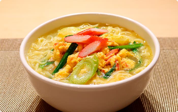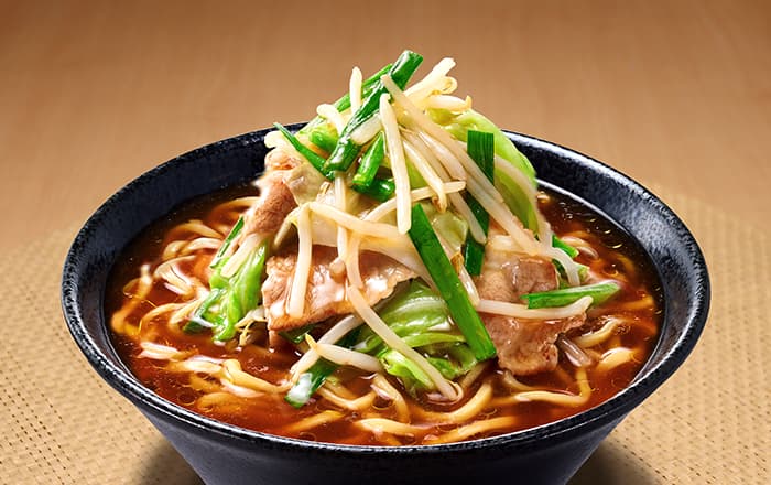 麺を先に器に移し、その上にスープ・具材を入れて最後に長ねぎをトッピングしてできあがり。
