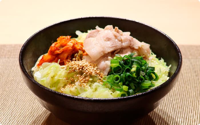 キムチ、韓国海苔をトッピングしてもおいしく召しあがれます。