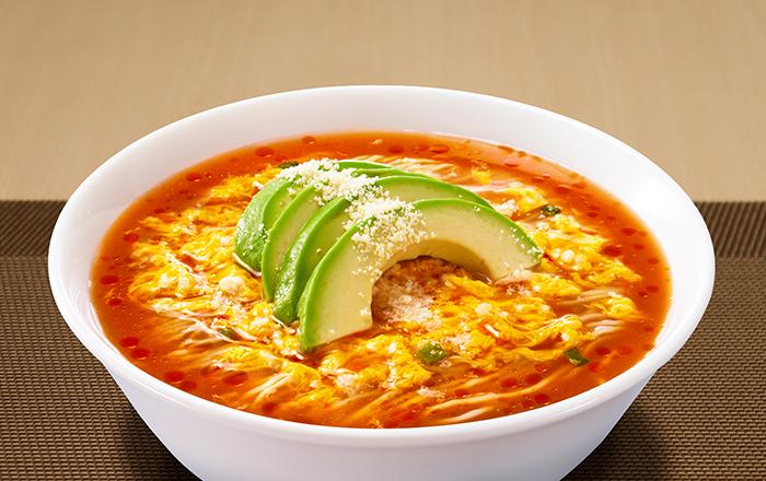 ホタテの旨みを、豆乳とアボカドで最大限に引き立てた低コストで高級感のある濃厚さを楽しめる一杯