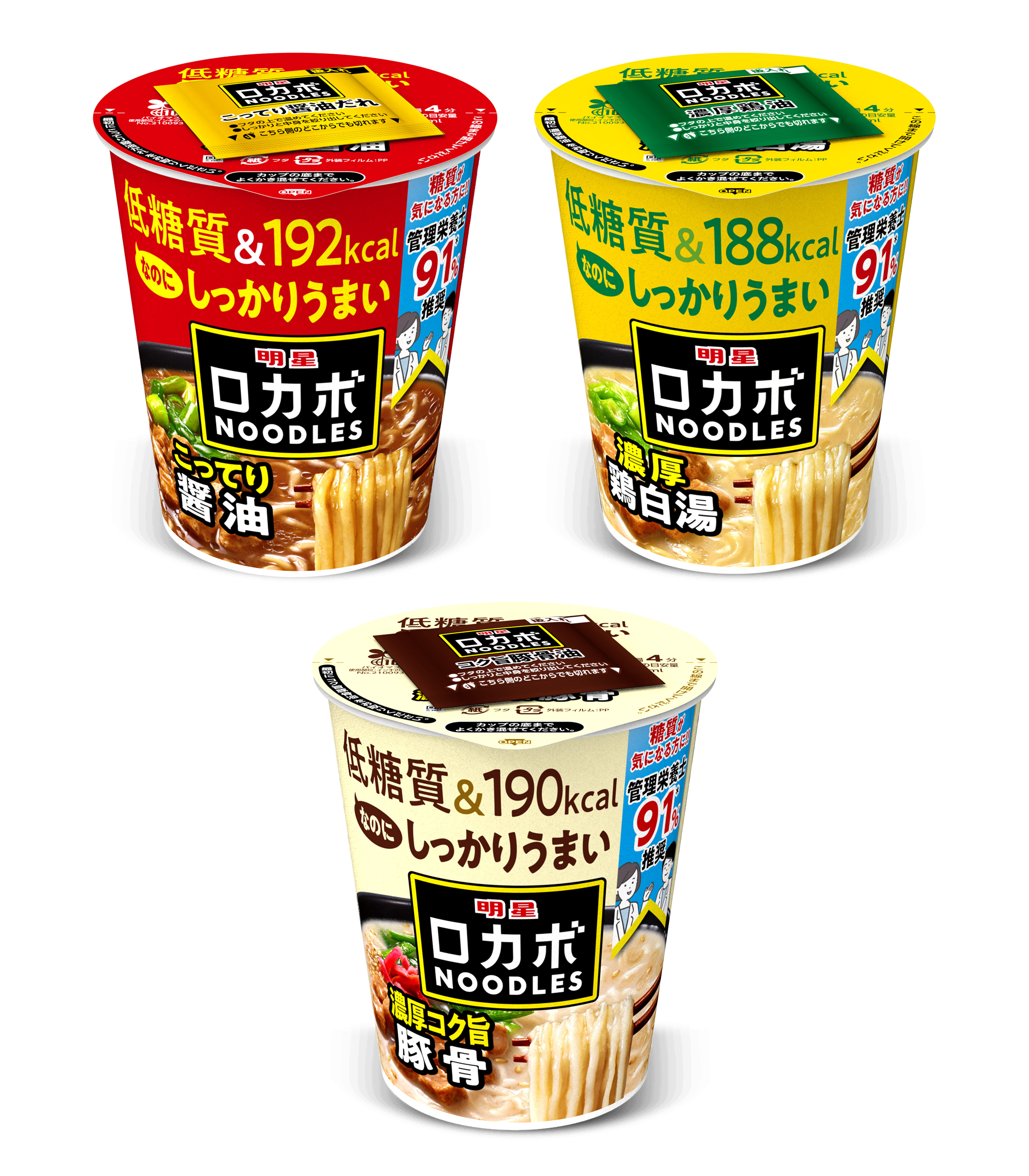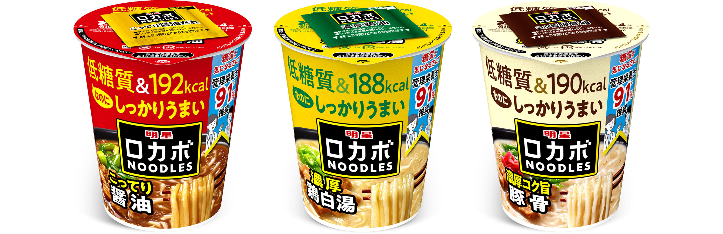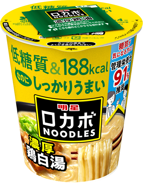 一般的なカップめん※と比較して、「明星 ロカボNOODLES」のラーメンは、糖質が30%オフとなっています。