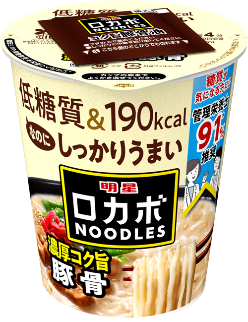 「明星 ロカボNOODLES」のラーメンは、200kcal未満なのにしっかりおいしい一杯です。