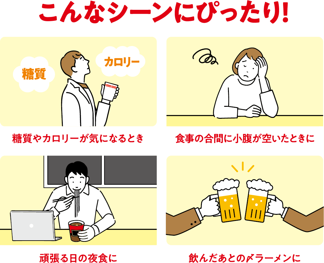 たんぱく原料を配合したスープと、大豆由来の植物性たんぱくにうまみ成分をねり込んだ具材「プロテインキューブ」入りです。