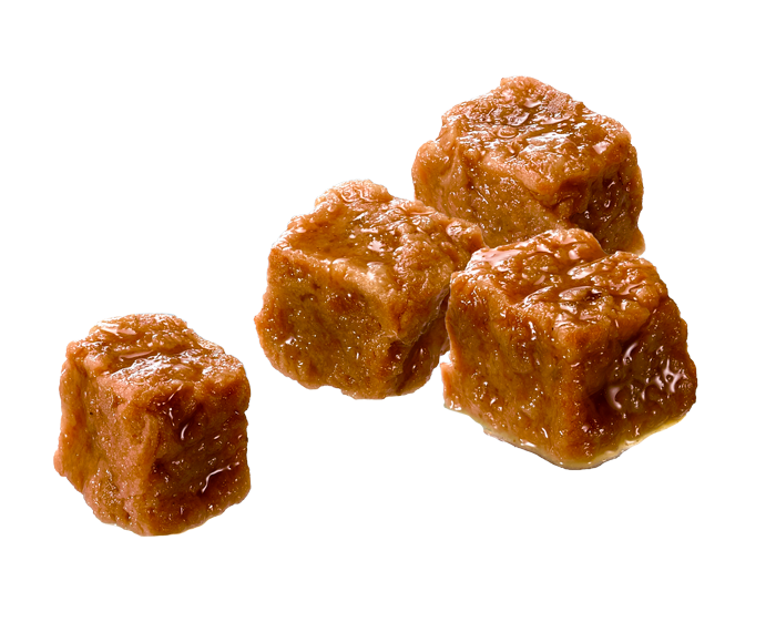 大豆由来の植物性たんぱくにうまみ成分をねり込んだ具材「プロテインキューブ」入りです。